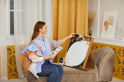 To get started, open the package and locate the detailed paper manual enclosed. Take a moment to thoroughly read through the instructions. Afterward, visit our website and upload your photo.
